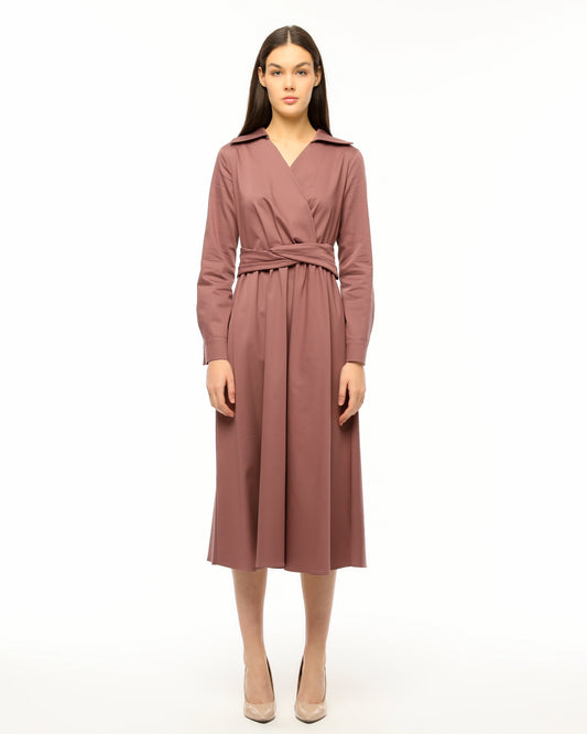 Pink Wrap Dress with Waist Tie and Elegant Collar