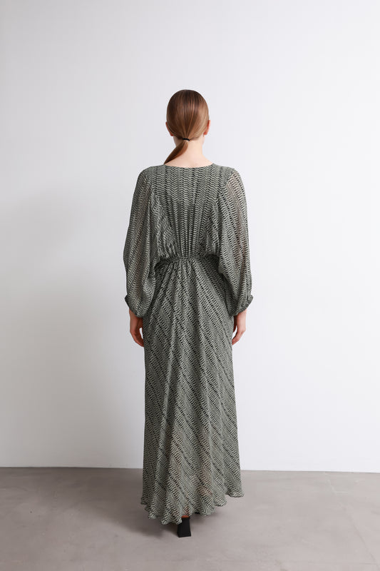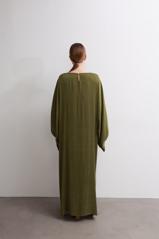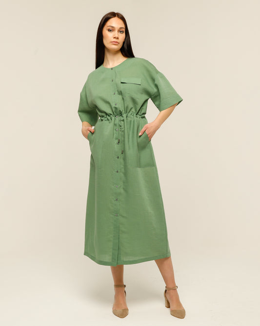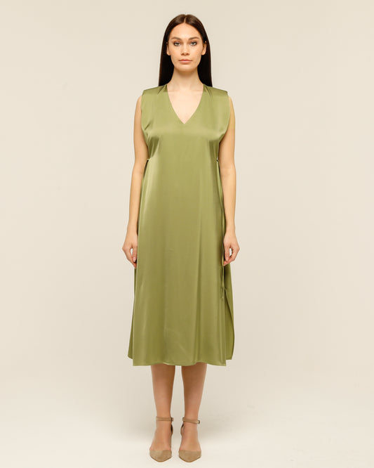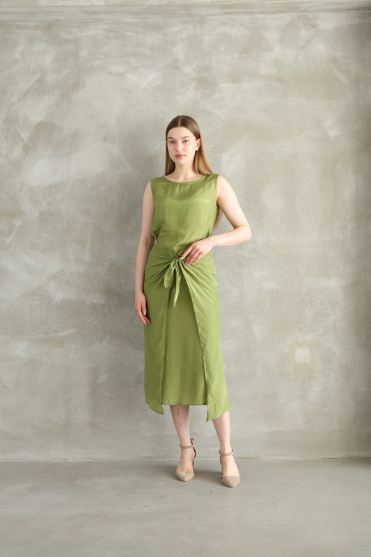 Henna Green Tie Detailed Viscose Midi Dress-EL154