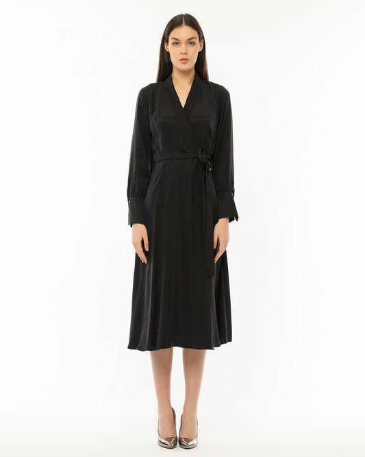 Pink Wrap Dress with Waist Tie and Elegant Collar