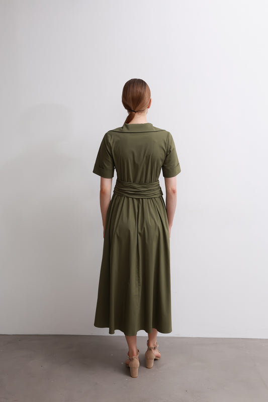 Dark Green Waist Tie Dress