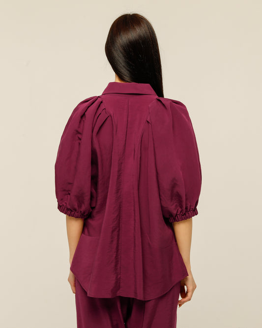 Burgundy Zippered Collar Shirt