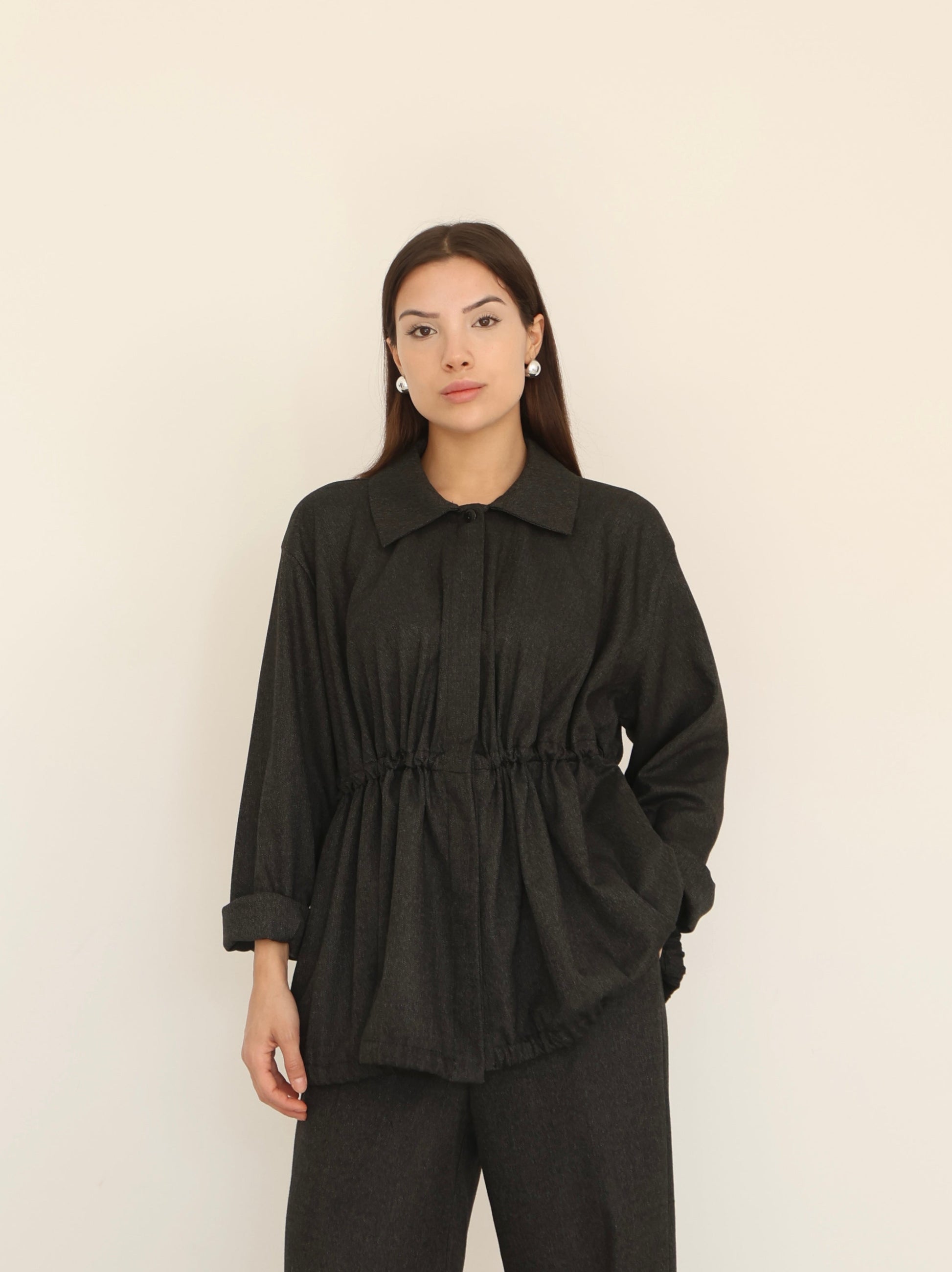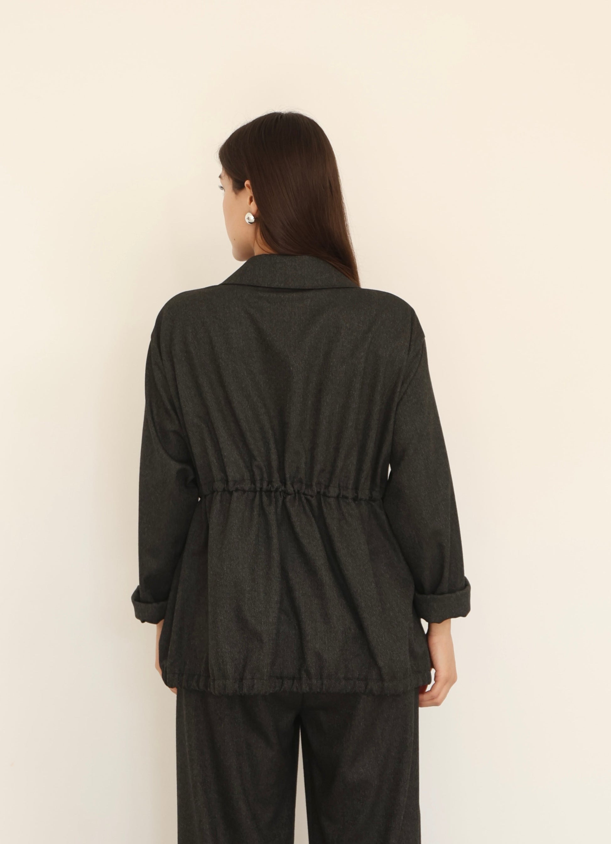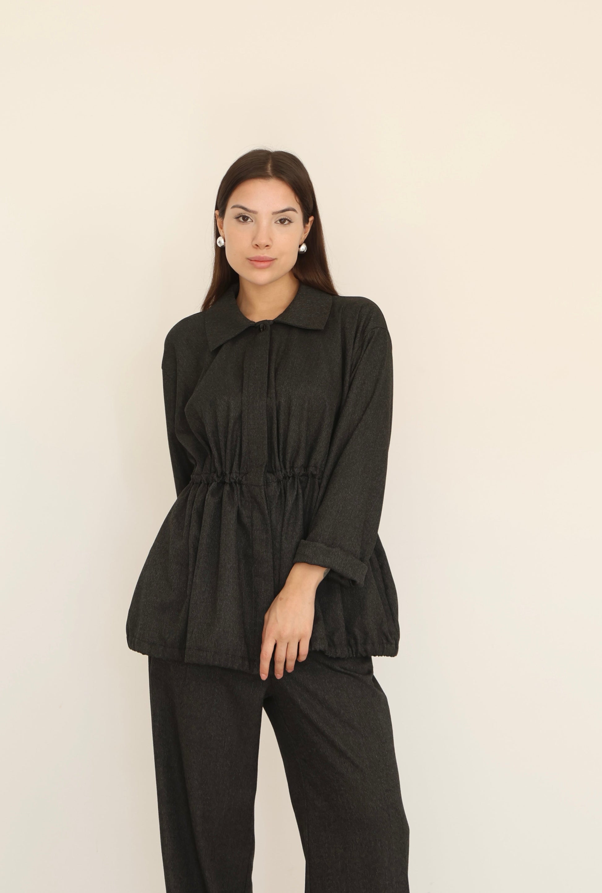 Discover timeless sophistication with this Anthracite Jacket, expertly designed in a luxurious poly-viscose blend that balances structure with comfort. The signature pleated accents create visual interest and graceful movement, giving you a polished look that works from boardroom to brunch. This versatile piece resists wrinkles while maintaining its tailored appearance, making it an investment piece that earns its place in your everyday rotation. Effortlessly chic and endlessly wearable.