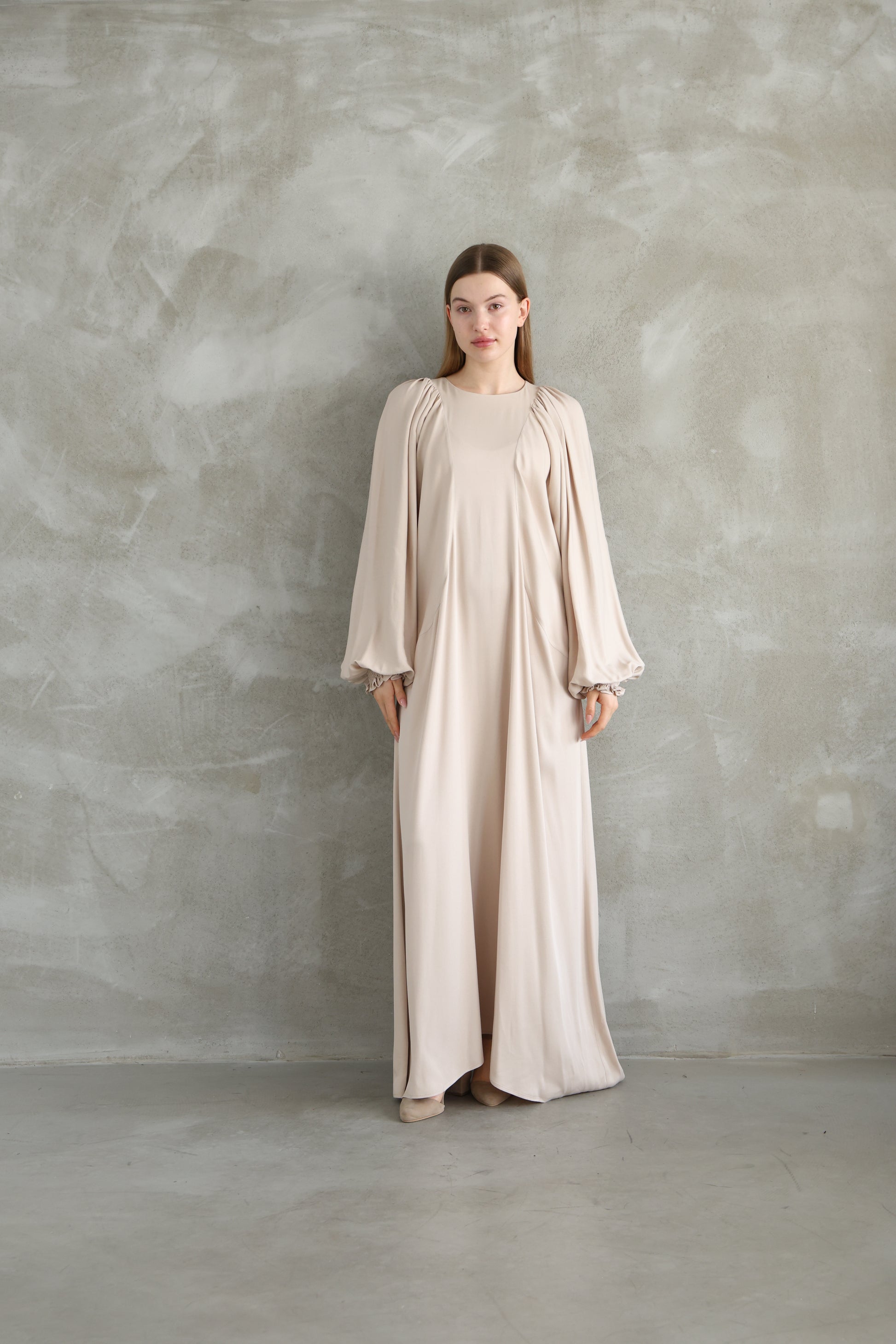 The beige colour dress is a stylish design that combines elegance and comfort. Produced using natural viscose fabric, this dress leaves a soft and light feeling. It provides both elegance and comfort. The maxi size of the dress offers an elegant and expressive look, but also makes it possible to move comfortably. Its simple and stylish cut allows the dress to stand out with minimalist lines. The loose look in its design offers a cosy clothing experience without wrapping the body, making the dress an ideal choice for everyday wear and special occasions. Beige colour brings your elegance to the fore in every environment by offering a calm and sophisticated tone. This dress offers an excellent option for those looking for an elegance that is both elegant and functional.