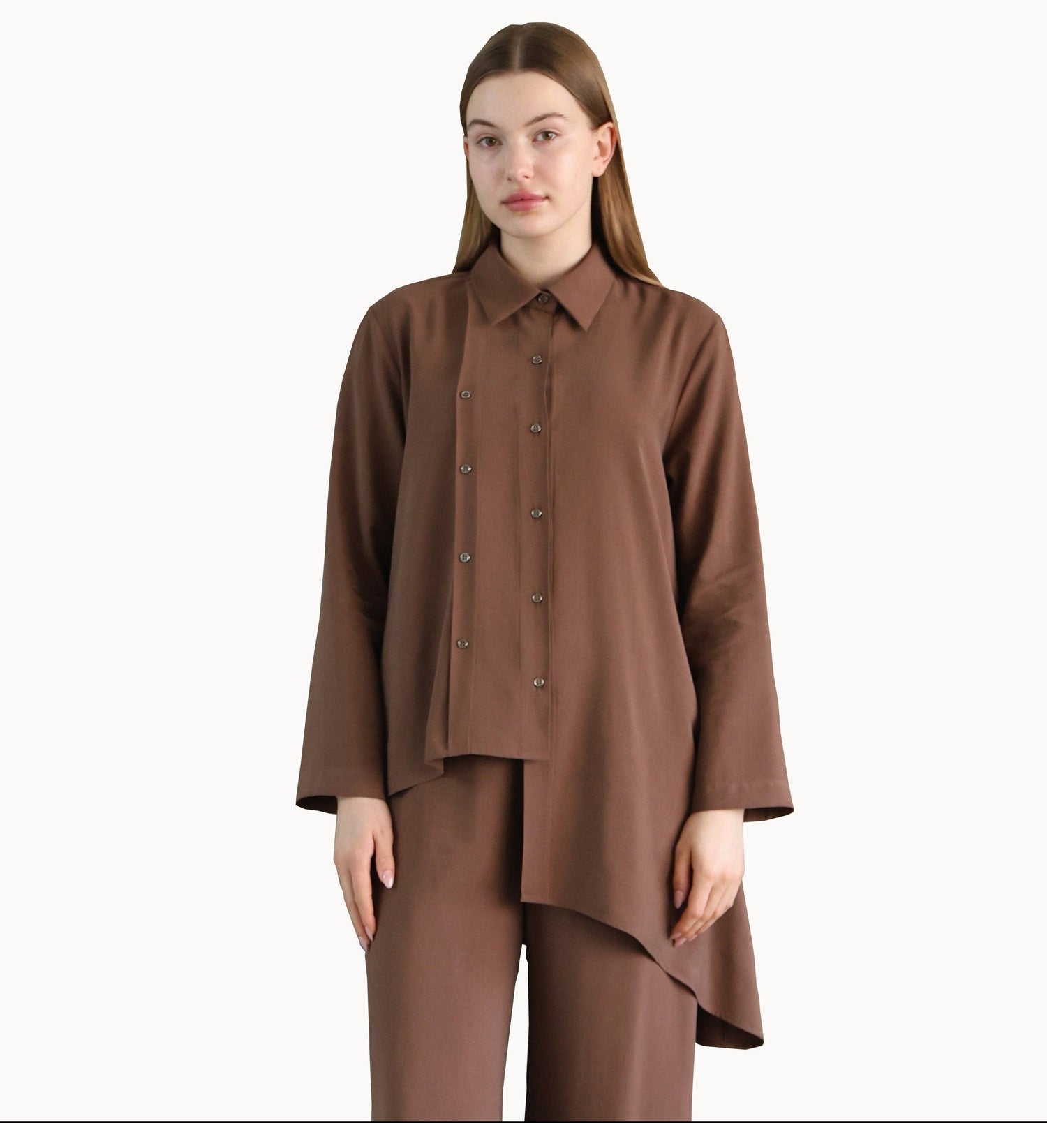 This black colored viscose shirt, which stands out with its soft texture and natural structure, brings elegance and comfort together with its elegant design. Thanks to its light and flowing structure, it gently adapts to the body and offers comfortable use. The draped details and minimal button design on the front give a modern and sophisticated look. The long sleeves and cuff details create a classic and timeless style, while the breathable viscose fabric provides comfort all day long. It is a perfect option to add an elegant touch to your daily style or to capture a sophisticated look in special moments.